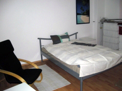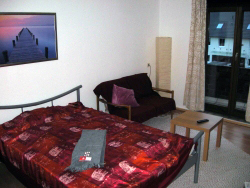 The equipped kitchenette and bathroom with shower and toilet are used by both rooms.